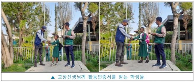 프로그램에 적극적으로 참여한 학생들이 교장선생님에게 활동 인증서를 받았으며, 학생들의 꾸준한 노력과