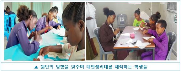 , 학생들이 대안 생리대를 직접 만드는 전 과정을 지도하였습니다
