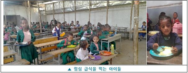 이번 급식 지원은 5개 대상 초등학교(Babogaya Primary School, Bekelcha Primary School, Hora Arsadii Primary School, Kera Hora Primary School, Bishoftu Special Needs School )에 아이들의 영양 균형을 고려한 급식이 매일 꾸준히 제공되었습니다.