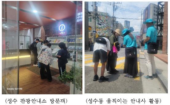 성수 지역 내 지속적인 관광 정보 및 상권 변화에 대응하고, 외국인 관광객의 편의성을 높이기 위해 최신 정보를 반영한 성수관광안내지도를 언어권 별로 주기적으로 업데이트하고 매주 50개가 넘는 팝업스토어 등의 행사도 개시하여 안내하고 있습니다.