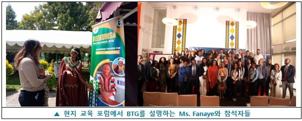 이번 행사는 BTG를 분야의 중요한 주체로 조명하는 자리였으며, 단체의 인지도를 크게 높이는 계기가 되었습니다. 무엇보다 국가 차원의 시민사회단체로 성장하고자 하는 BTG의 중장기 목표를 더욱 굳건히 다지는 뜻깊은 시간이 되었습니다. 전반적으로 이번 교육 포럼 참여는 매우 의미 있고, 실질적인 성과를 남긴 활동으로 마무리되었습니다. KVO는 BTG와 함께 에티오피아 비쇼프투 지역의 교사 교류 활성화와 더 나은 교육의 질 향상을 위해 노력하겠습니다. 감사합니다.