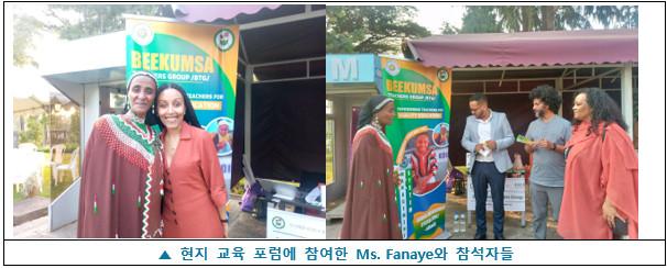 행사 현장에서는 교육의 질을 어떻게 개선하고, 아이들의 학습 과정에 실질적인 변화를 만들어갈 수 있을지에 대한 논의가 이루어졌습니다. BTG를 대표해 포럼에 참석한 Ms. Fanaye는 발표를 통해 Beekumssa Teachers Group의 정체성과 활동 방향을 소개하며, 단체가 걸어온 길과 앞으로의 비전을 공유했습니다. (*BTG는 비쇼프투 지역 교사 교육 공동체 모임입니다)