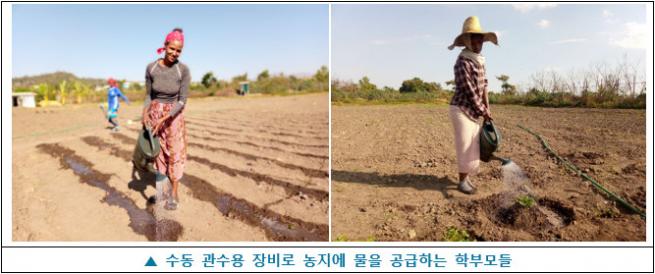 교육장에서 감자 수확량 증대를 위한 핵심활동으로 감자 농장 관수 작업을